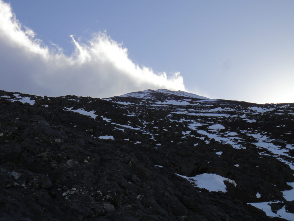 予定通り7時ごろに出発。1時間ほど登ると少し雪が出てくるものの5合目でもあまり積雪はない。